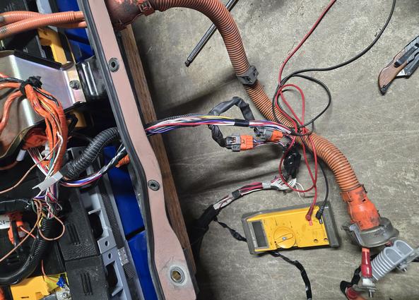 adding the orion bms wiring to the pack and running it up under the hood with custom easy to disconnect connectors
